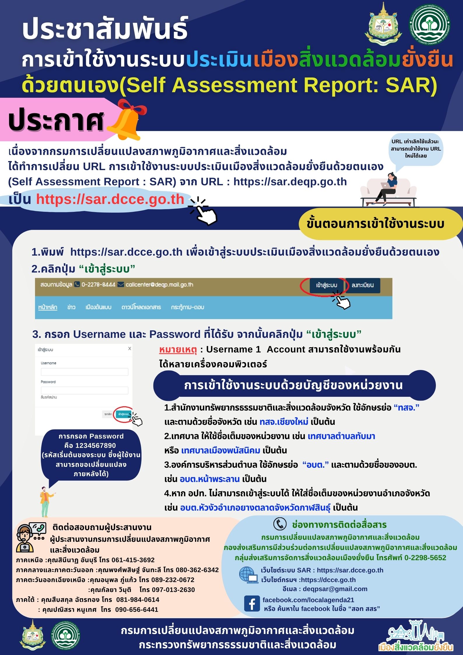 ประชาสัมพันธ์ การเข้าใช้งานระบบประเมินเมืองสิ่งแวดล้อมยั่งยืนด้วยตนเอง (Self Assessment Report: SAR)
